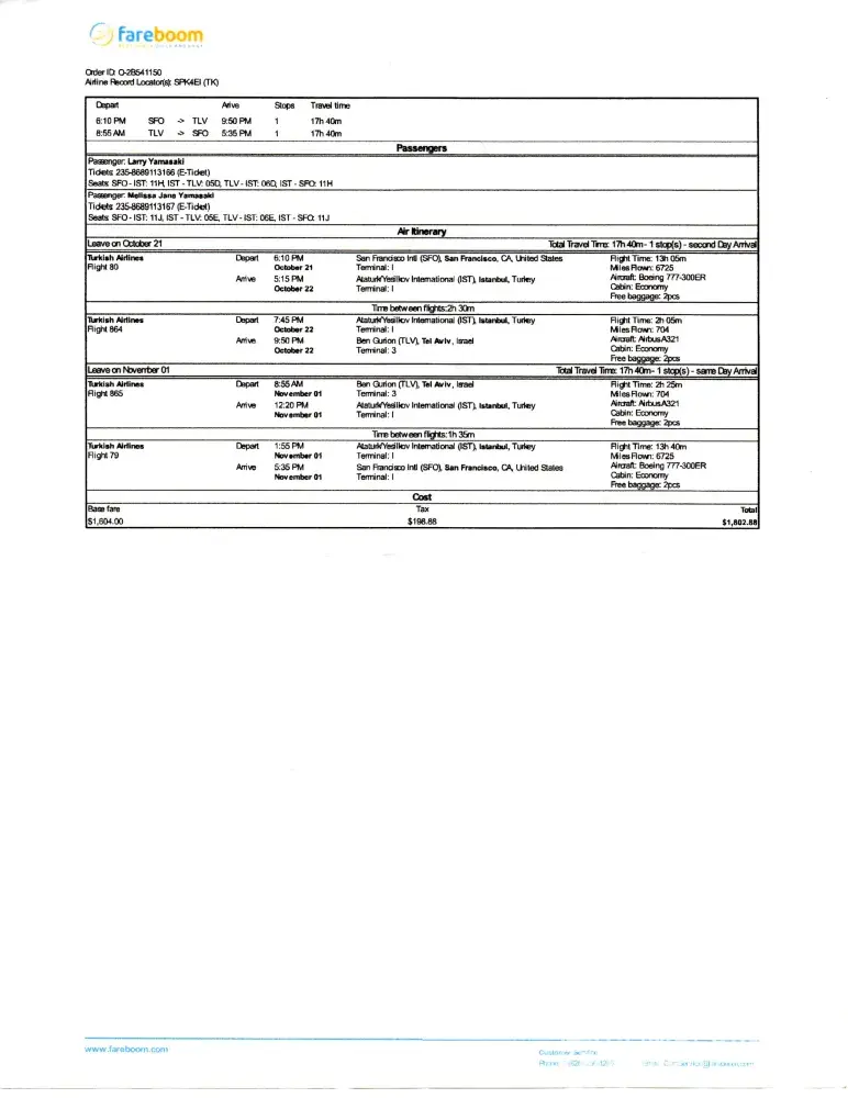 I purchased a ticket from Amsterdam Netherlands to Istanbul turkey for two passengers under the name Aly muhammad and Essam muhammad