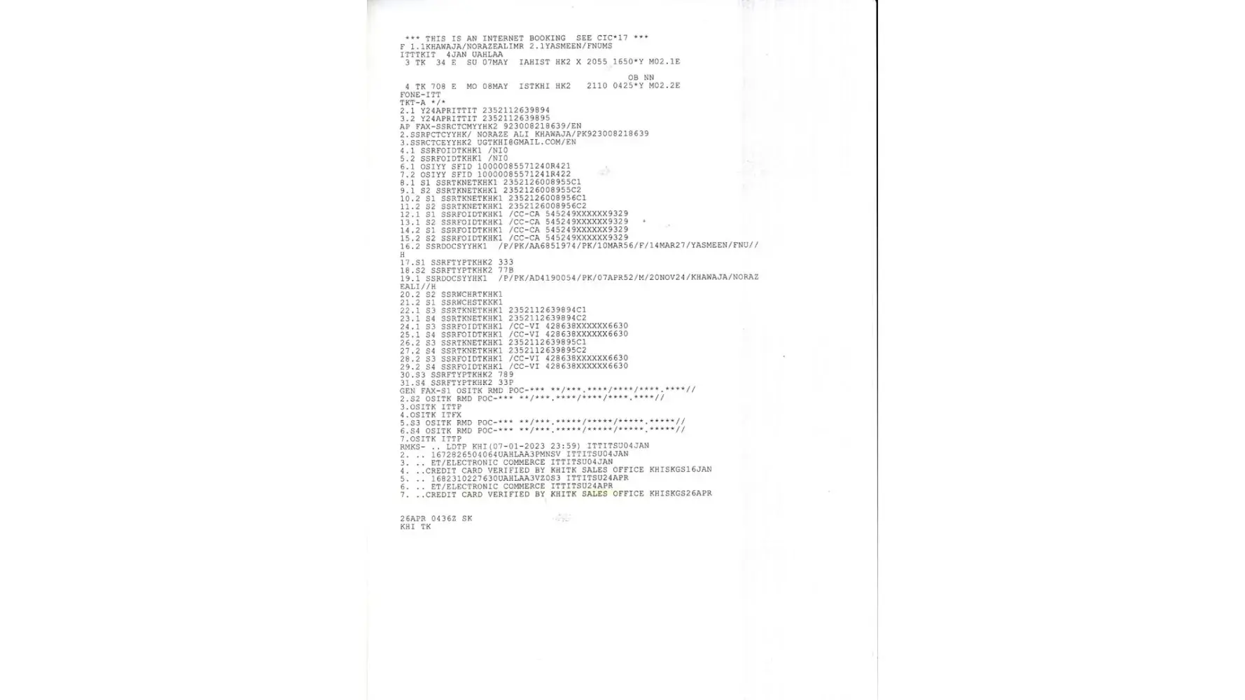 Yasmeen /fnums ticket nr,[protected].