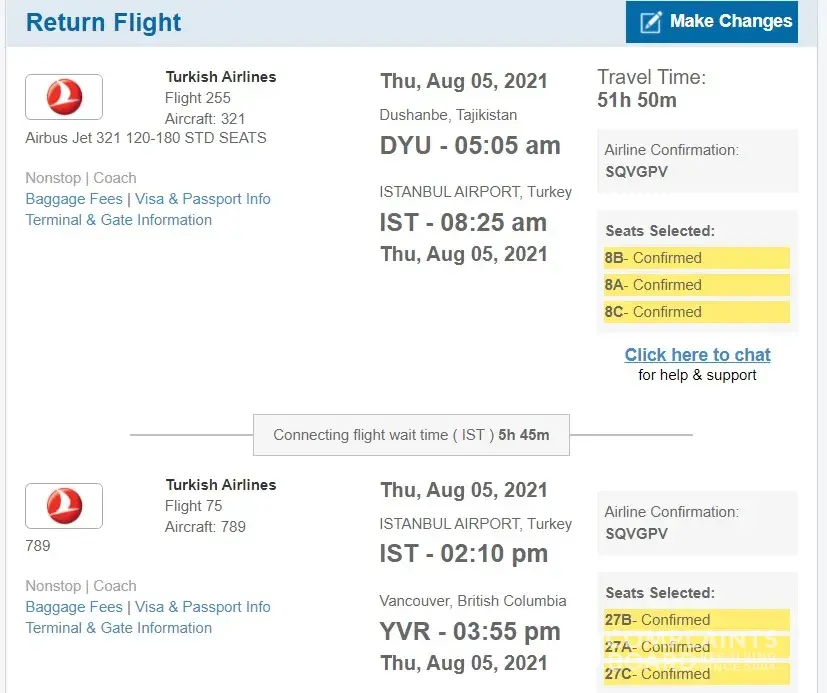How come there was no problem on our initial flight - same route from usa to dushanbe and on the 5 of august, 2021 the turkish airlines claims that they don't see it on the system the half of the ticket and itinerary (from dushanbe to istanbul to vancouver). Looks like the problem occurred with in turkish airline system. Turkish airline representatives in dushanbe blaming cheapoair. We contacted cheapoair and even checked our booking reservation and itinerary on chatbot of cheapoair and there is no problem. We may not take this matter to court if you fix this problem and issue us new tickets and reimburse all the expenses caused us by this problem of turkish airlines system.