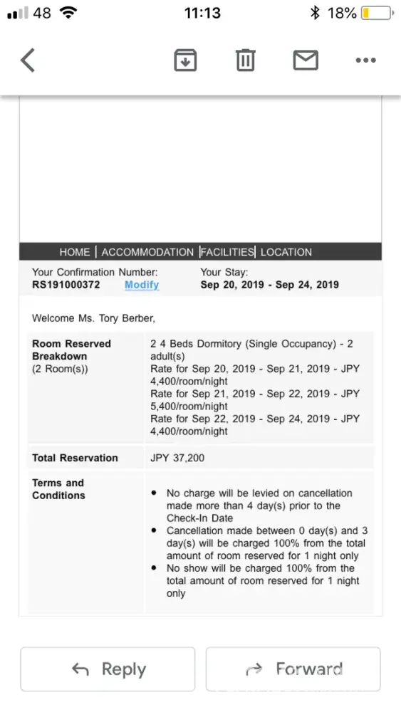 The disruption in our travel itineraries has caused significant futhur costs that has been incurred by us; two night accommodation in Tokyo and two rugby World Cup match tickets.