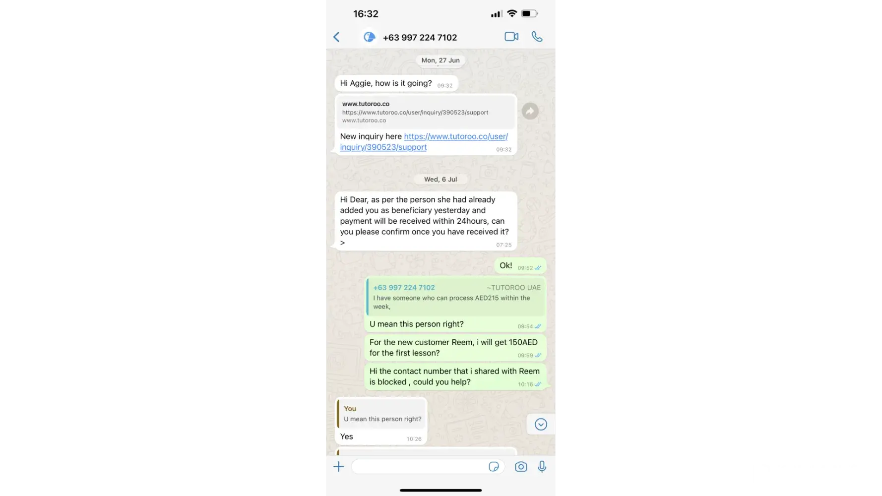 this happened on 1st June 2022, still until today 18th July 2022, I haven't received payment. Totutoo just keeps saying that the girl supposed to pay me is going to transfer the money to me soon, or Tutoroo says the girl has processed the payment but maybe there is a problem, she needs to check with the bank. I asked what if the girl she will never transfer, shall I wait for her forever? Tutoroo said that they will follow up, and there is no deadline. I asked for other means to pay me, they say they can not, because the payment is in process.