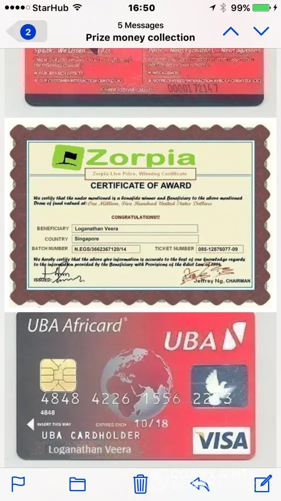The message you received is a scam and Zorpia does not hold any games or lotteries from which users may win a large amount of money. You may report those fraud users to us by sending an email support@zorpia.com or clicking/tapping the 'report abuse button' found in their profile or in their message to you.