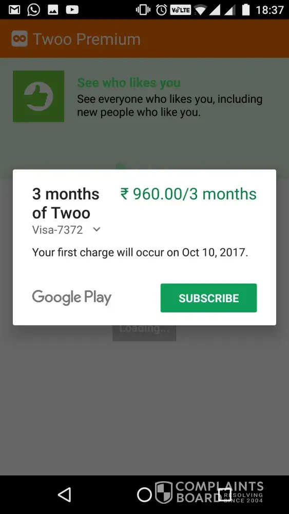 Twoo.com customer care's response, aug 16, 2017