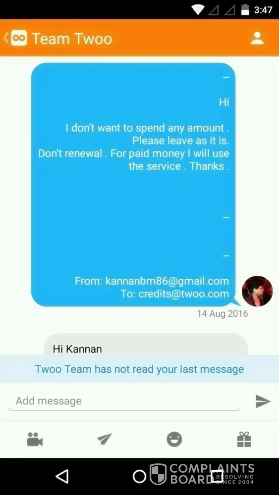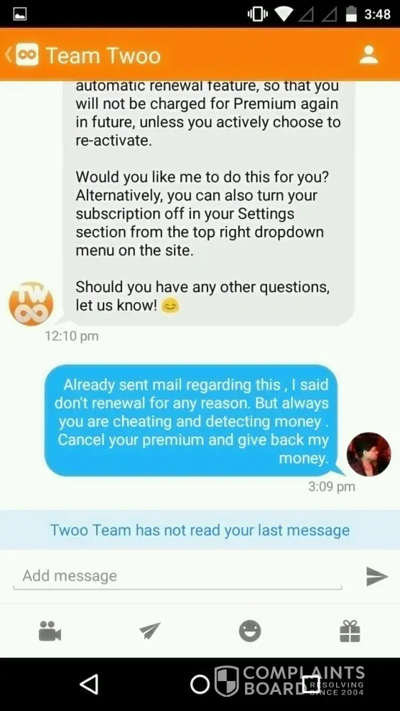 Today Twoo has deducted money from my credit card . This is not acceptable. I need the refund asap and cancellation of my account.