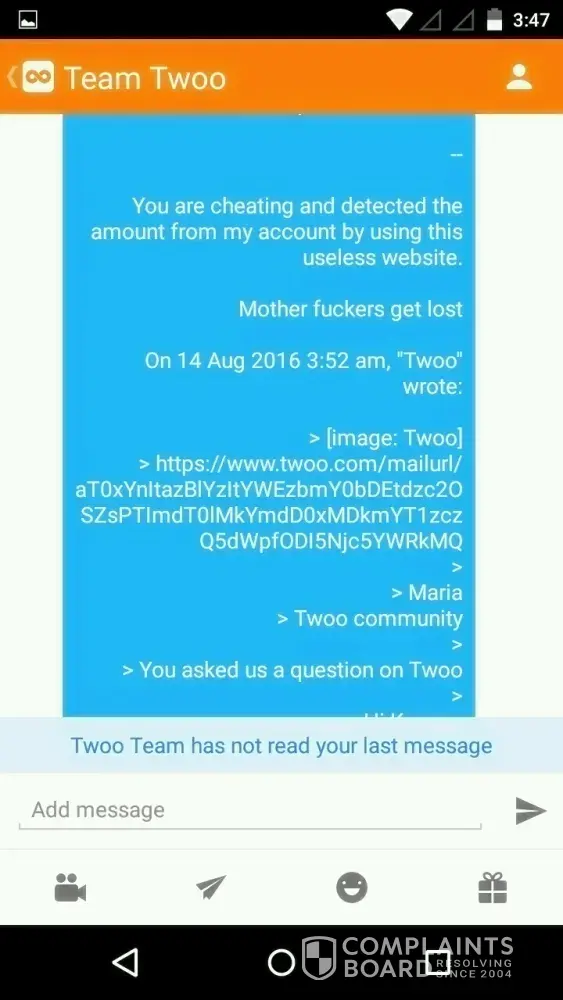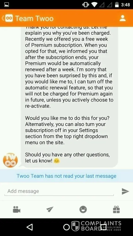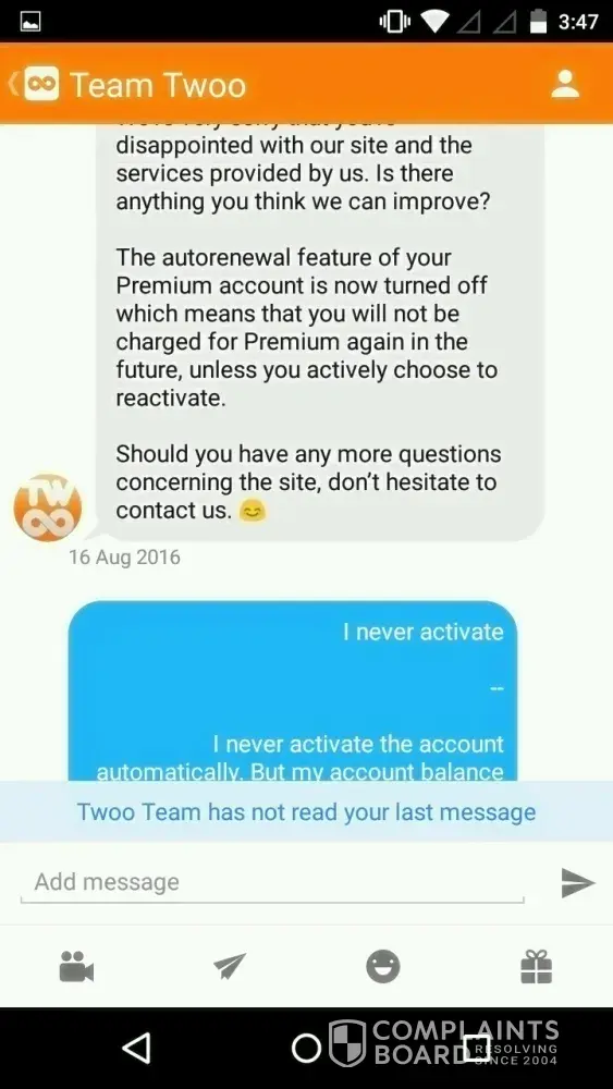 My account was never activated. Twoo is not interested to look why unless I send them MTN billing info. I am a pre paid user and don't get billing info. When I subscribed nothing was mentioned of billing statements. All correspondence with two has been like corresponding with a pre school child.