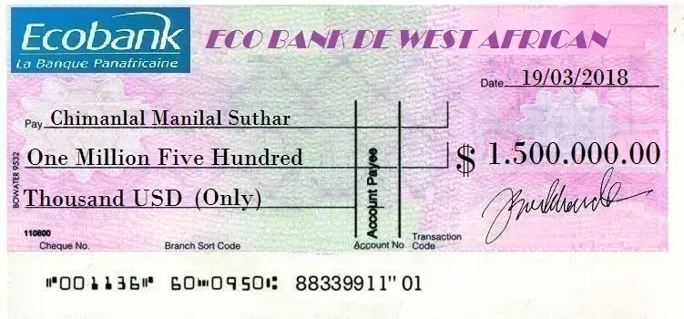 Dear Mr Suthar congratulations once again, please we are very sorry for the late notification just right moment we received a call from the bank this morning that your International cheque is successful and we have brought it right now from bank together with the approval certificate document and also decided to scan the photo copies and show to you so that you will see it for your confirmation.