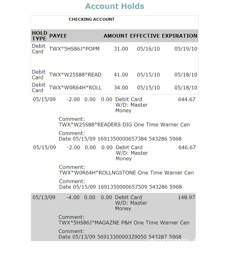 Today, 7/5/12, I check my account again. And I'm missing another $17.50, leaving me with less than $3 in my account.