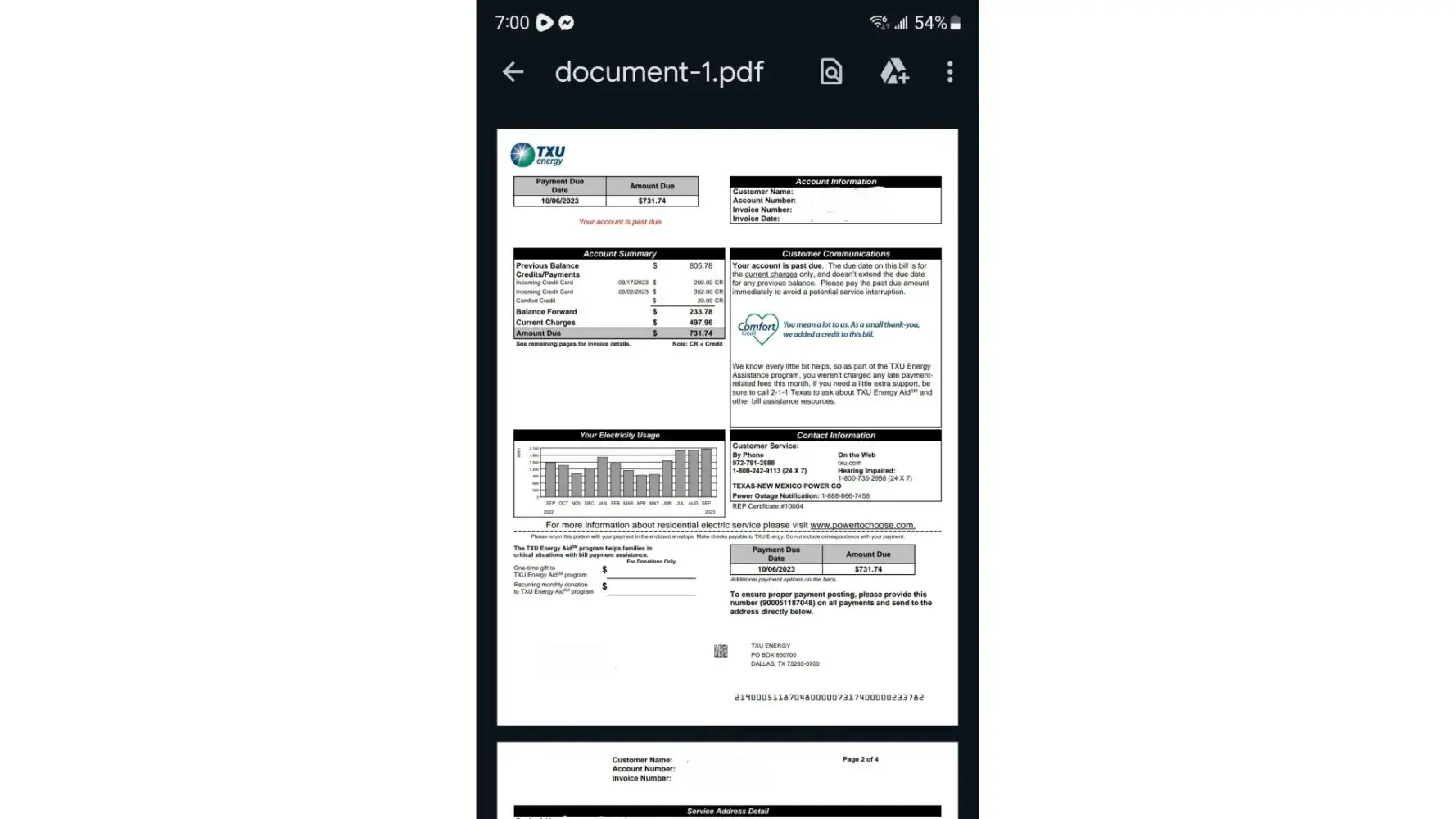 During this time, I had my own service through TXU at my current residence.This is the same service that was transferred when i moved. I was current on my TXU electric bill when i received this letter.