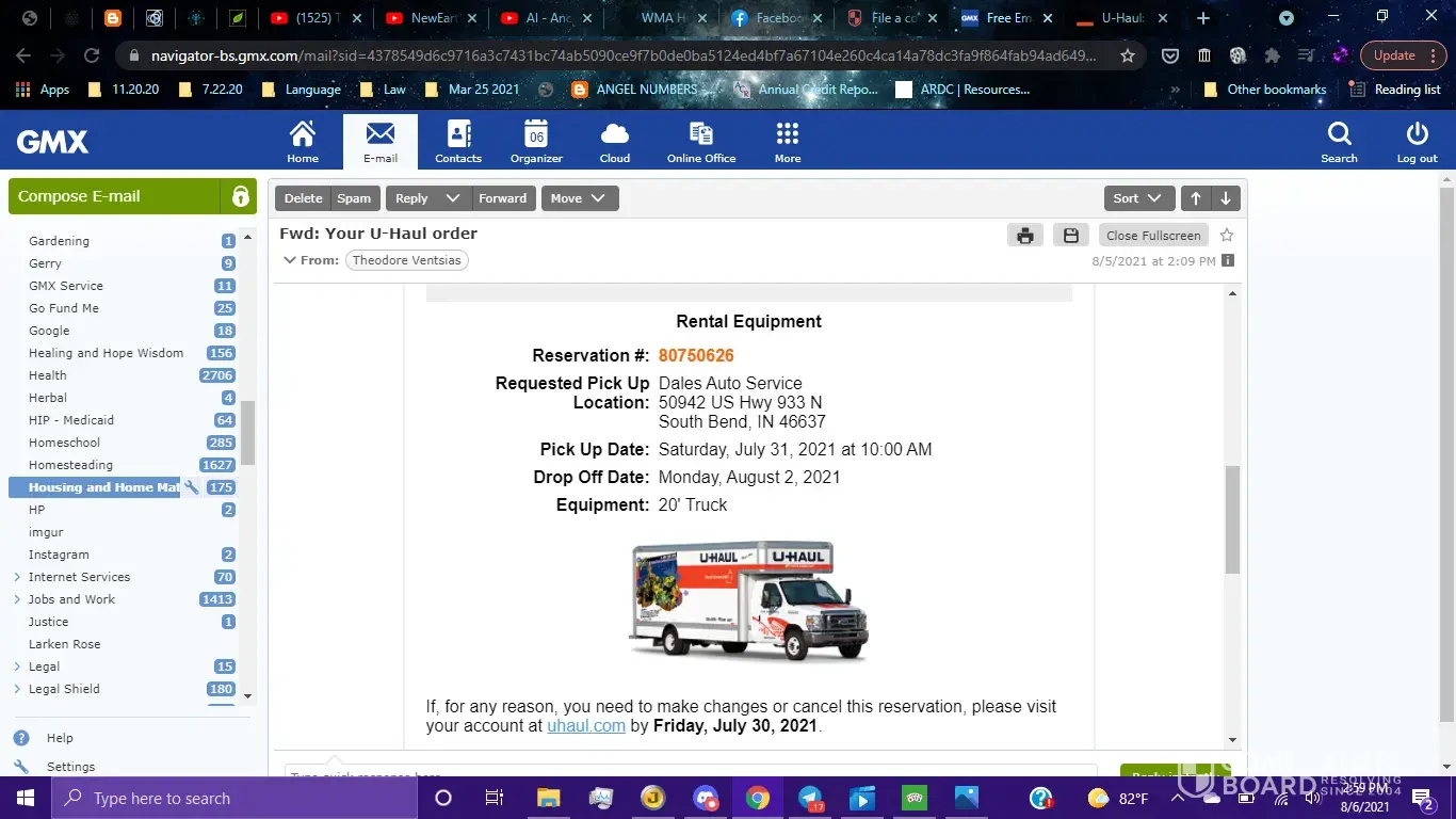 We had a 26' truck rental reserved for 10 a.m. Saturday, July 31, 2021.
