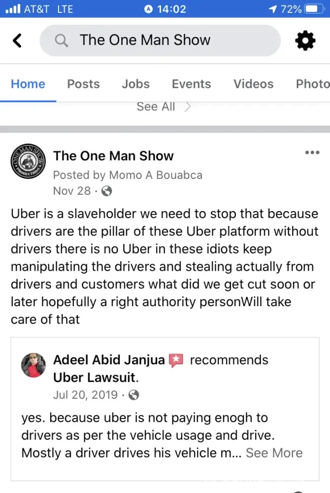 This uber company is an absolute abuse of people / drivers that put their values to a company that have no morals but using individuals and their property as their own asset to play with and in reality they have no investment the play with other people life and asset it a total abuse not worth believing their bluff letting them using you and your car in exchange of non adequate compensation this company is greedy and acting as slavery holders