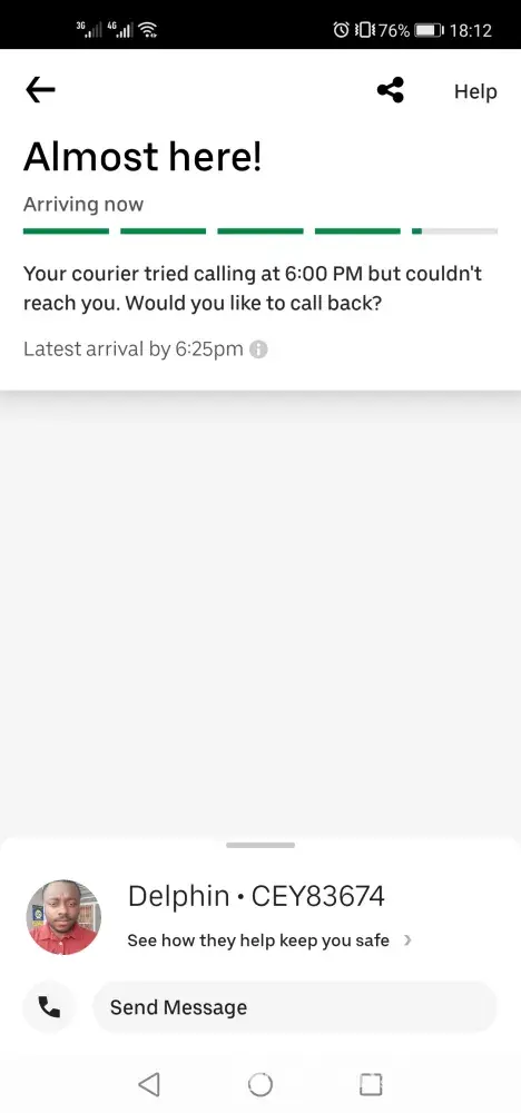Driver Delphin stole my food order but logged it on the app delivery successfully. I was left without my order and also lost money for my order which I never got including his tip.