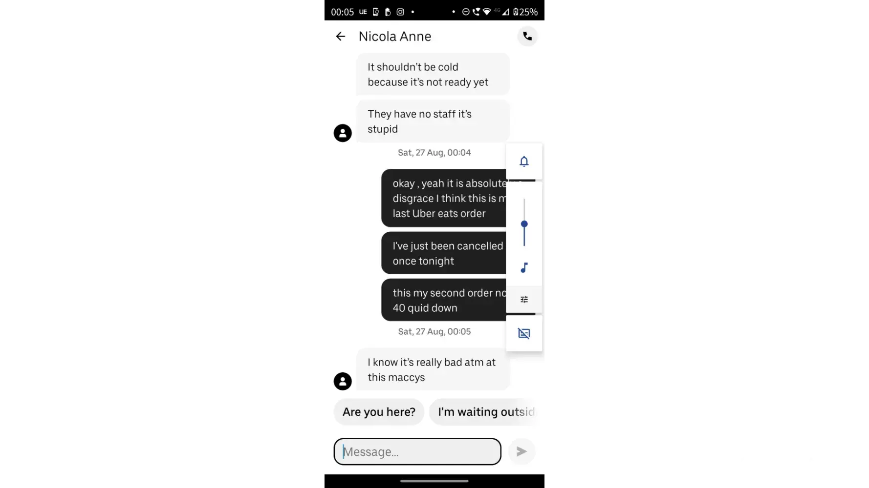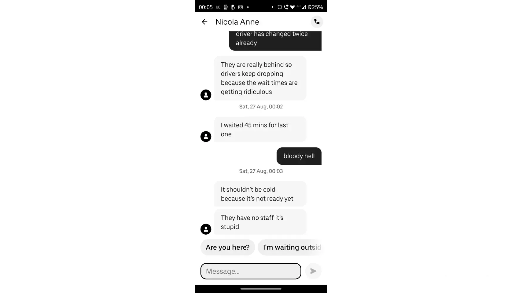 Late service, abusive delivery driver