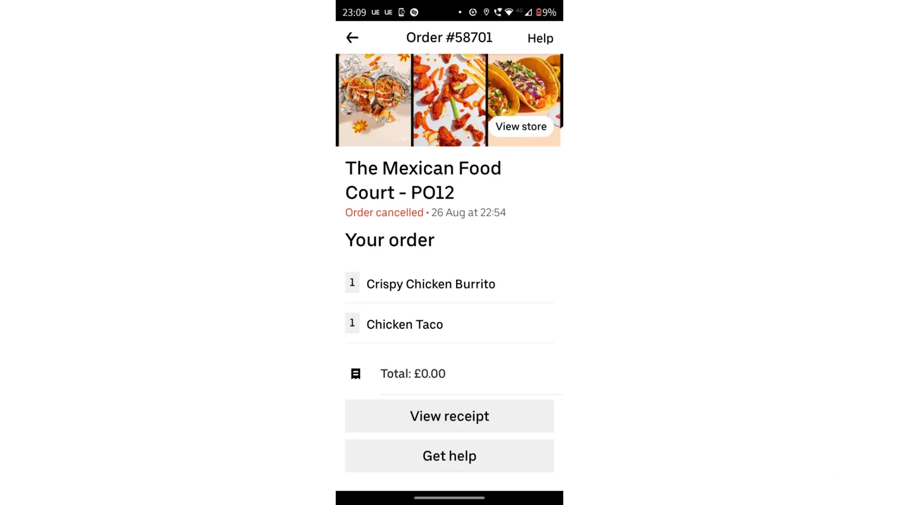So firstly I order The Mexican food place, 20 mins go by, for the restaurant to ring me and tell me their closing soon, so had to get a refund, so 20 quid down with no food..
