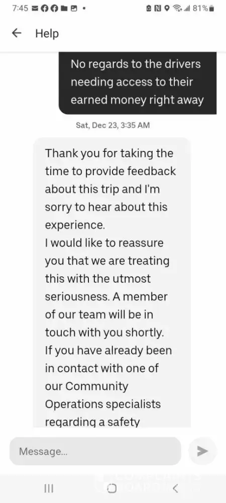 Originally they seemed concerned and said they will investigate Uber Pro, to see if they're mishandling funds that are owed. Needless to say, I haven't heard from them since that day back in Early Feb 2024