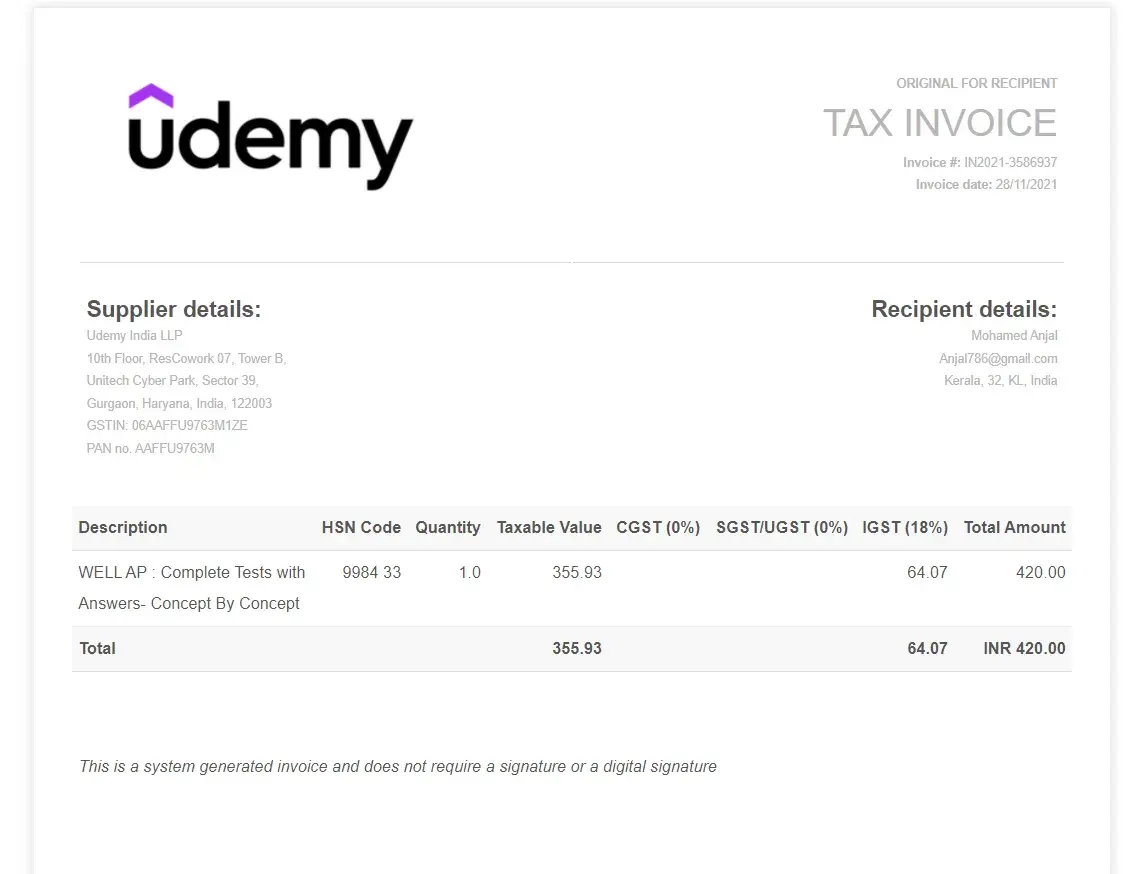 I am Mohamed Anjal, As I had purchased a practice test from Udemy for my well ap exam preparation Course ID 4355118.