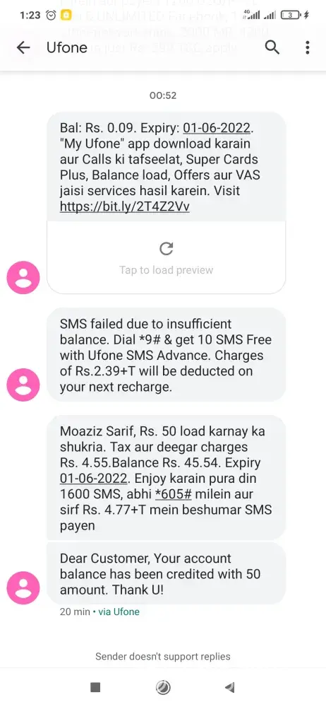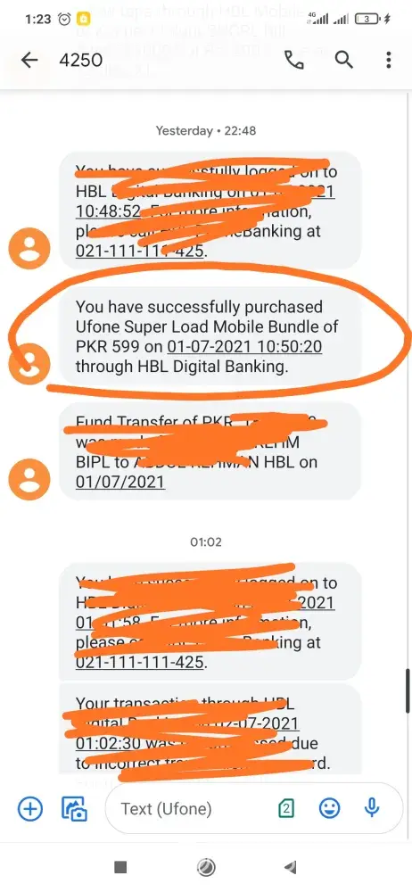 I reloaded a super card through my HBL app. I received message from HBL app but not Ufone. 600 rupees were deducted from HBL but I received no super card. My number is [protected]. I later loaded 50 rupees from the same app and received the balance on the same number. I tried calling 333 and other helplines but none of them were helpful. Kindly look into this matter.