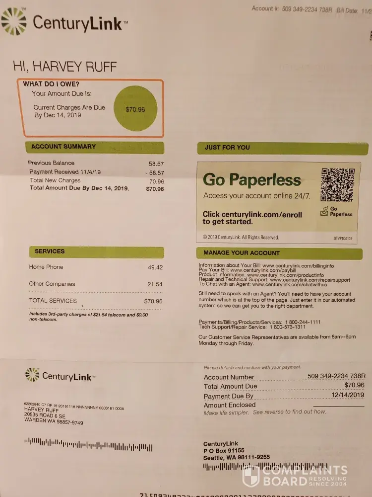Several unauthorized usbi "network service bill - mth service bill (fees) attached for our long distance phone bill through century link.. Demanding payments... Who/what is a usbi? We did not/nor do not have any business dealings with such a company? Nor with anyone with those initials. We called our phone carrier (century link) on 12/05/19 @ 7:18 am (pst...