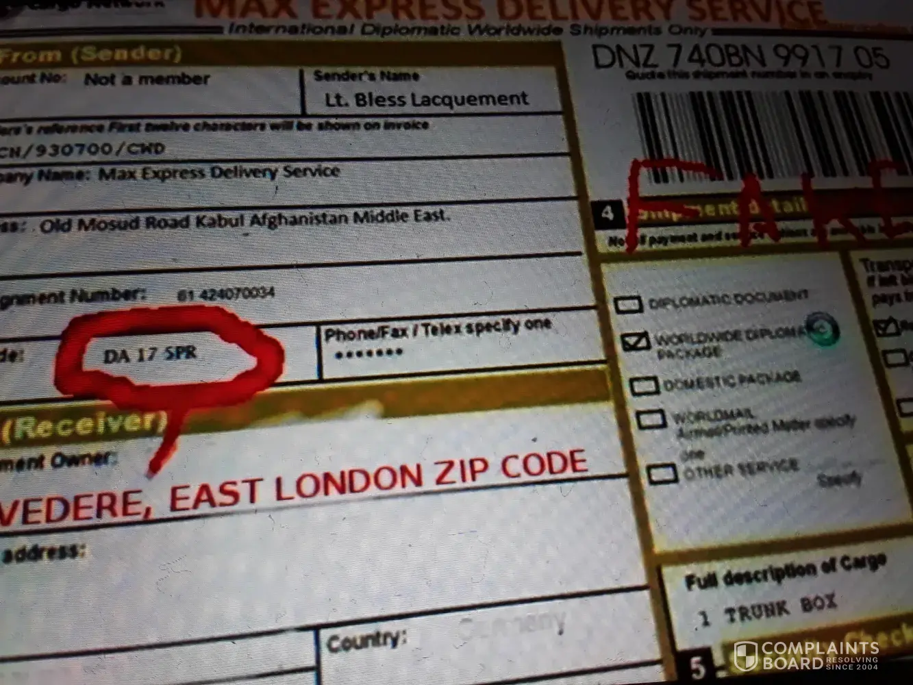 Read full complaint and 1 commentMax Express Delivery Service - diplomatic delivery service