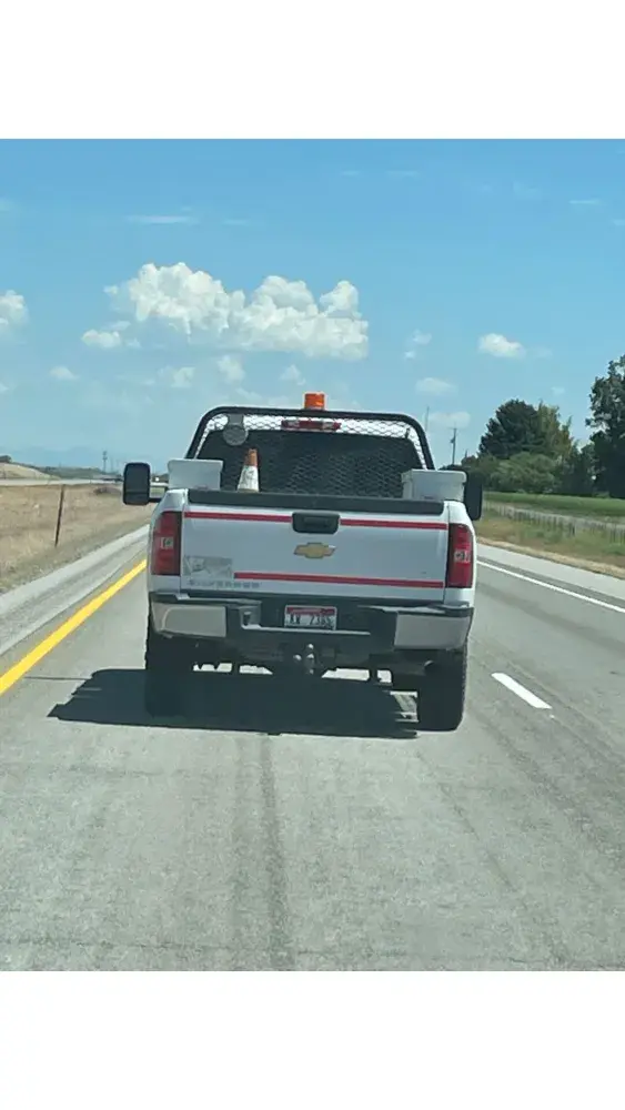 I was heading east from Jerome on I-84 on Saturday, July 16th at approximately 1:45 PM. I was driving a 2007 3/4 ton Chevy Suburban towing a small utility trailer. My speed was approximately 75 to 80 MPH. I was about 100 feet behind another vehicle, traveling the same direction at the same speed. We had both moved over to the left lane in order to pass a UPRR pickup, in the right lane,