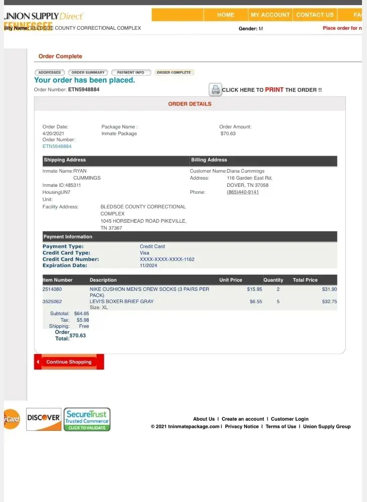 I have been purchasing inmate packages for a few years now via Union Supply Direct with no problems until recently. Apparently, they have a new computer system in place, and it has major computer clinches/ problems. It allows you to make purchases and the funds are immediately taken from your account. You receive the order confirmation and exactly seven days later your orders are canceled on their end not the customers.