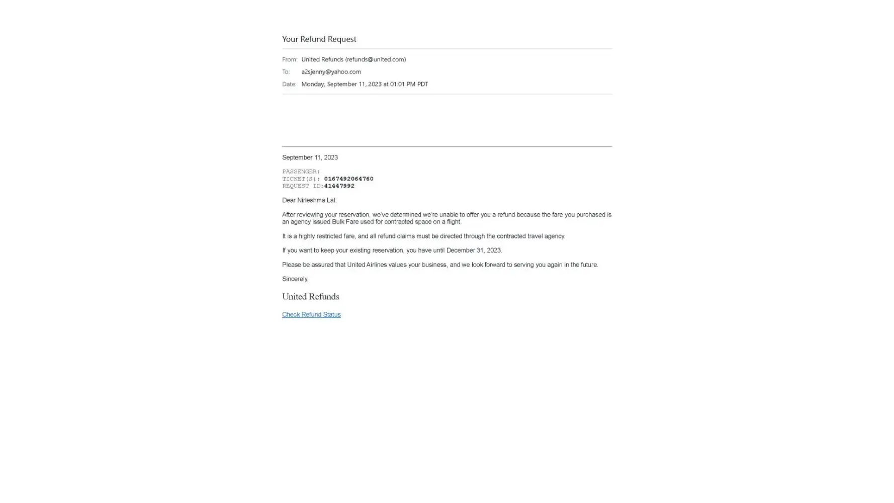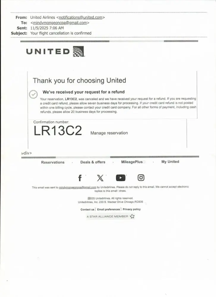 United Airlines I have requested refund - united airline ticket