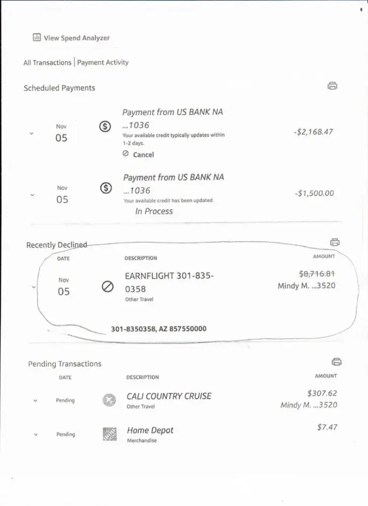 I called United Airlines 800 864-4655 this morning to find out if the government shut down was going to affect my flight to Australia and was somehow routed to 833 627-7236 which belongs to a flight reservation company. When they answered I asked about my concerns with the government shut down. The woman (didn't write down her name) asked for the confirmation number which I gave her. She looked up my reservation and said my flight was cancelled because my seats had already been booked by someone else and they needed to re-book my flight because of the seat changes. I was in my MileagePlus account at the time and I told them I didn't see any problem with my flight. The woman kept stating they needed to cancel my flight and re-issue the ticket with the new seat numbers and I should have received an email regarding this issue (I did not receive an email). I looked at my email, address and phone number and they were all old and not valid any longer (I moved 5 years ago). Which was strange as I had already had my passport and flight verified for my flight to/from Australia. I asked for a supervisor (Vitag wouldn't give me his complete name) and he said he could help me get it updated. He changed my email address and sent me a confirmation of the flight I had already booked (LR13C2). He obviously had access to my United Airlines account. I completed the remainder of the changes on my end (phone number, mailing address). He told me the flight had to be re-booked because it had already been cancelled and the refund was going to my credit card ending in 716 (I think). I told him that card had been cancelled so he asked for my new one which I gave him. After a moment he came back on the line and said he needed another credit card because they were having problems with Capitol One. He asked for another credit card and I told him I do not have another credit card. He hung up on me. Then I get an email from Untied Airlines stating that my flight had been cancelled and a refund was on the way. I opened my Capitol One account and found where a company called Earnflight had tried to charge my account the same amount as the original flight $8,716.81 but Capitol One declined it (see attached charge).