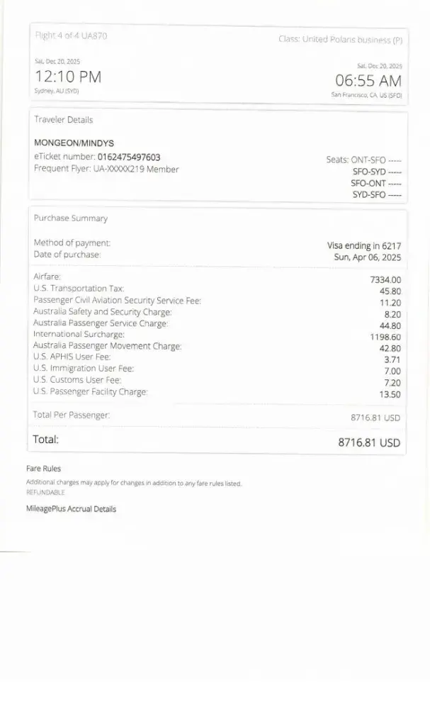 I bought the ticket in January 2020 right before the COVID and my flight was scheduled for April from San Francisco to Australia.