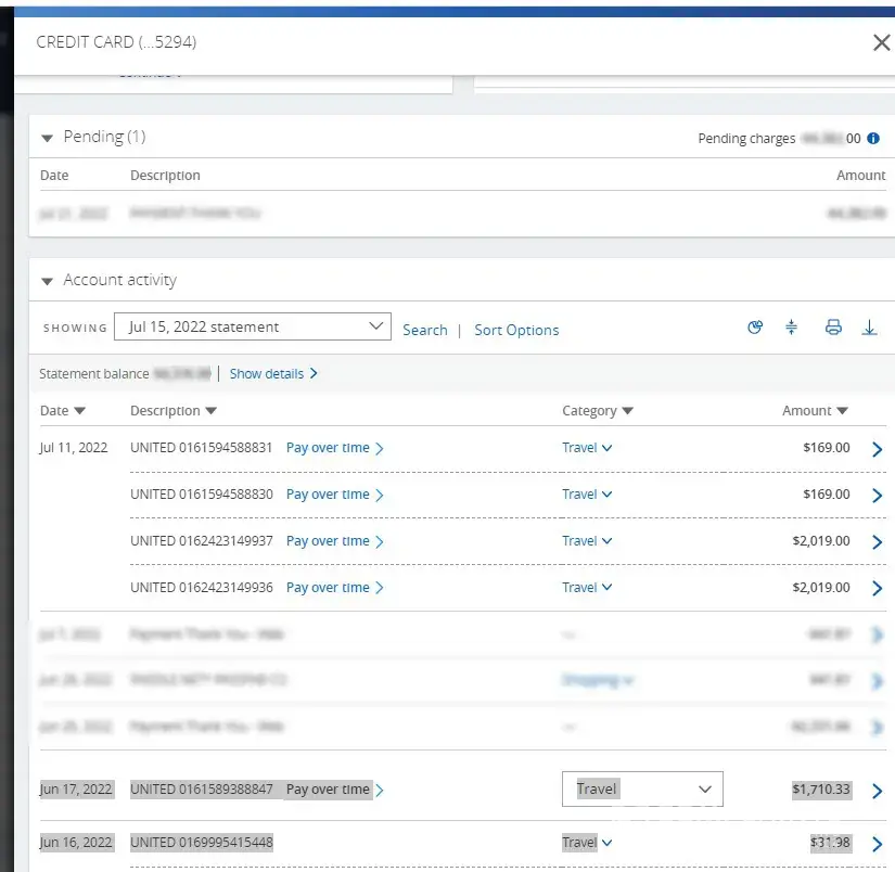 credit - for 2 - for $4,117.12 issued by United in my United Account.