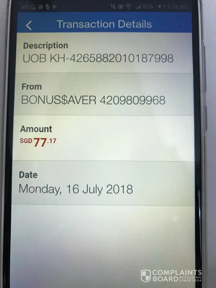 I received mail today that I have not paid my last bill $77.17 + $90 late charges + $3 interest. I called UOB [protected] to clarify that I made payment online to UOB KH on 16 July 2018.