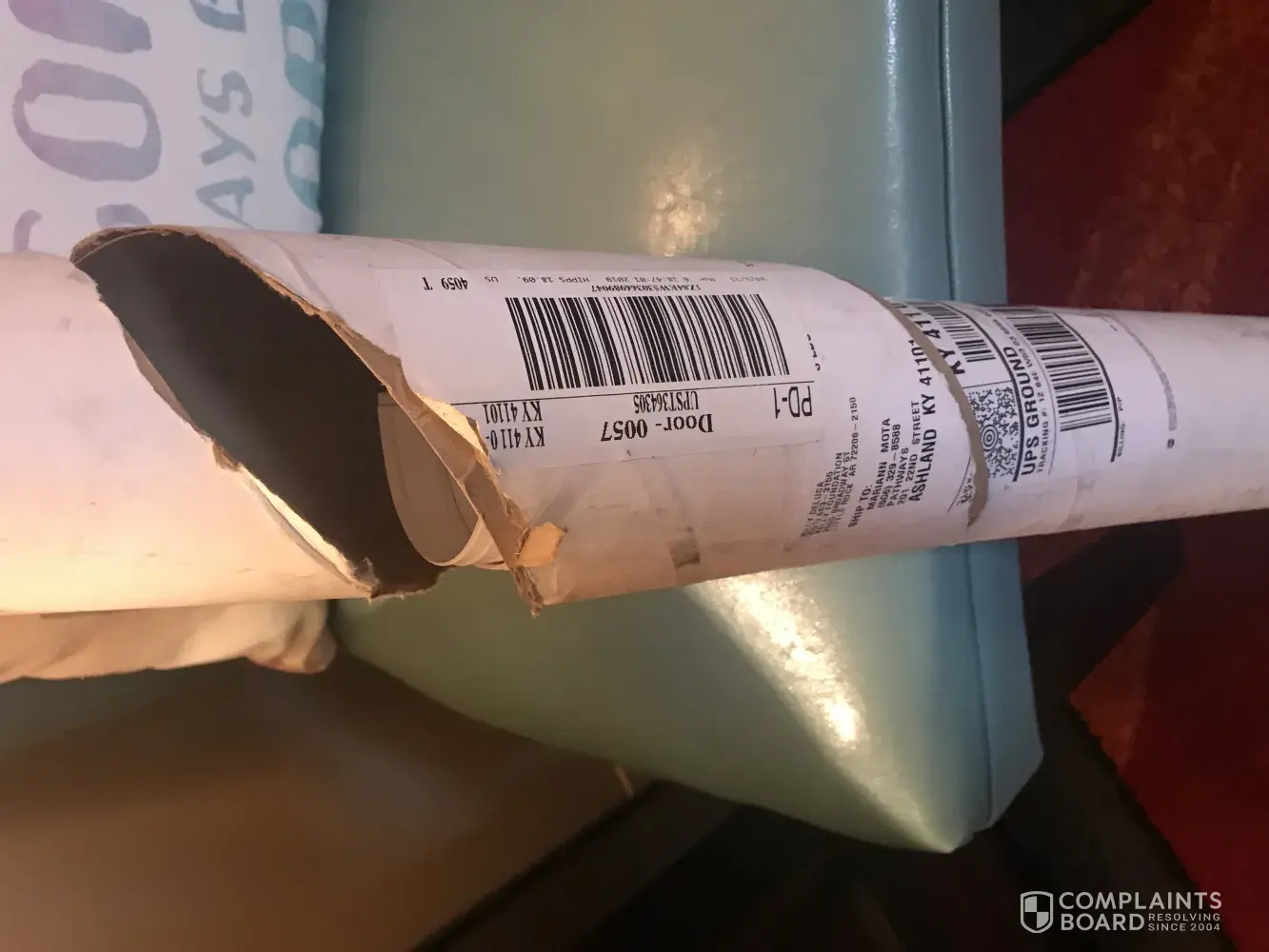 I received 6 Scotch mailing tubes on Wednesday March 6th at my office located at the following address: Pathways, Inc. 201 22nd Street Ashland, KY 41101 These tubes contained Recovery Dynamics posters from the Kelly Foundation each tube containing $275 worth of material. Four of the six tubes I received had huge gaping holes in them (see attachment...