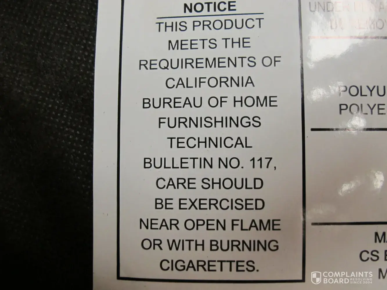 My boyfriend and i have an apartment at The VIllas, and we remember being neighbors with this girl. I have not had the experiences she posted about, but i can state that Mike Idyle our Manager did have to resort to almost begging her to close her windows during multiple rainstorms in the middle of 100 degree summer heat. This extra water in her apartment seems like it would not have helped a situation with mildew. i also went and looked at my furniture, and it appears this girl took a picture of only one label on our furniture, as the other label says that it was approved for use & sale in California, I guess a furniture maker has to post the information that it is ok and safe, so i am glad they did.