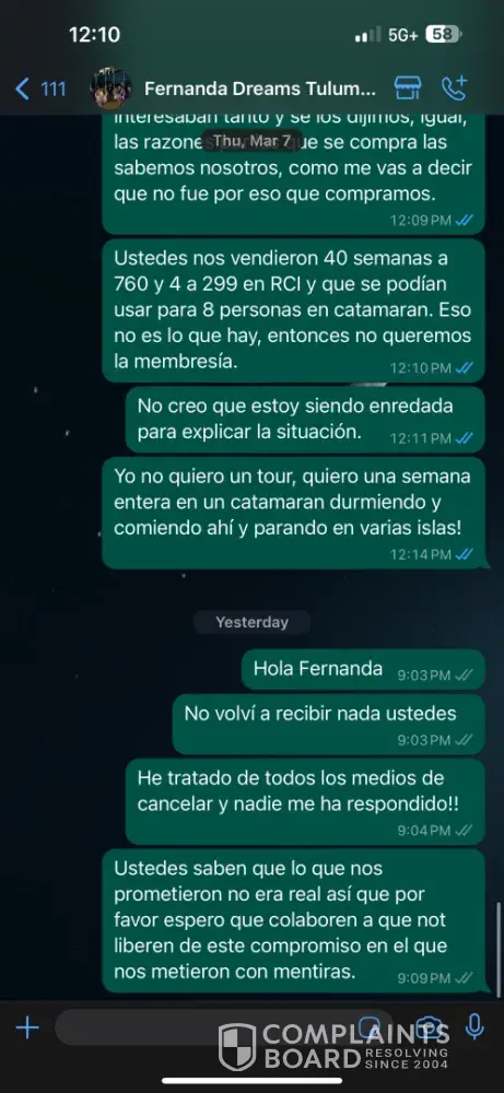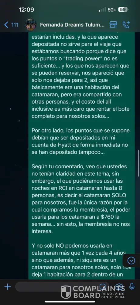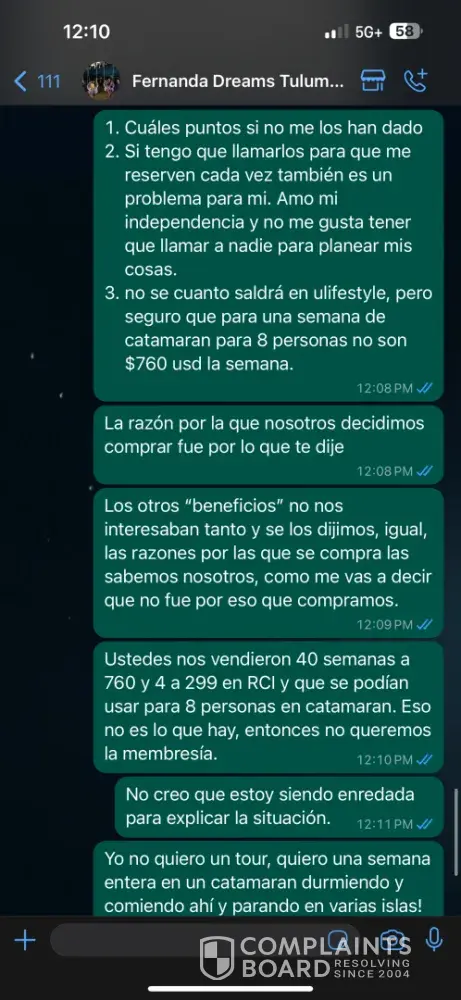 On February 25, 2024, I attended a sales presentation by Arrivia, Inc. at Dreams Tulum Resort & Spa. False claims were made about the Unlimited Vacation Club (UVC) membership. I was promised 40 weeks at $760 each and 4 weeks at $299 each, usable for up to 8 people per reservation on the RCI website, including hotels and exclusive catamarans (1 week for...