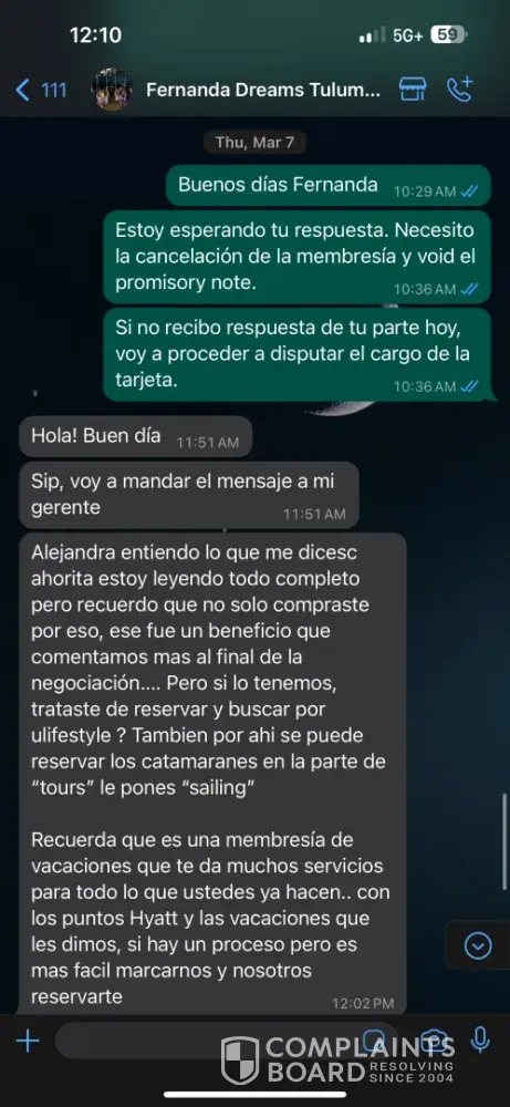 I have been trying to cancel my membership for over a month now. I even got the BBB involved. You can terminate your membership within 5 business days but they did not give me access to their site, still don't have it, to effectively assess their program. There is also a 15 business day voluntary termination that will cost you a little of what they charge for the stay - in my case it was an upgrade from their Dreams Tulum to their Secrets Moxche resort. I'm willing to absorb some of that cost but they simply will not reachout to me any longer, not since 2 Feb have I heard from them even though they have told the BBB they have reached out to me. They have now charged my card for monthly payments - which I will refute and hopefully nix their monthly charge until we re-establish contract to resolve the termination.