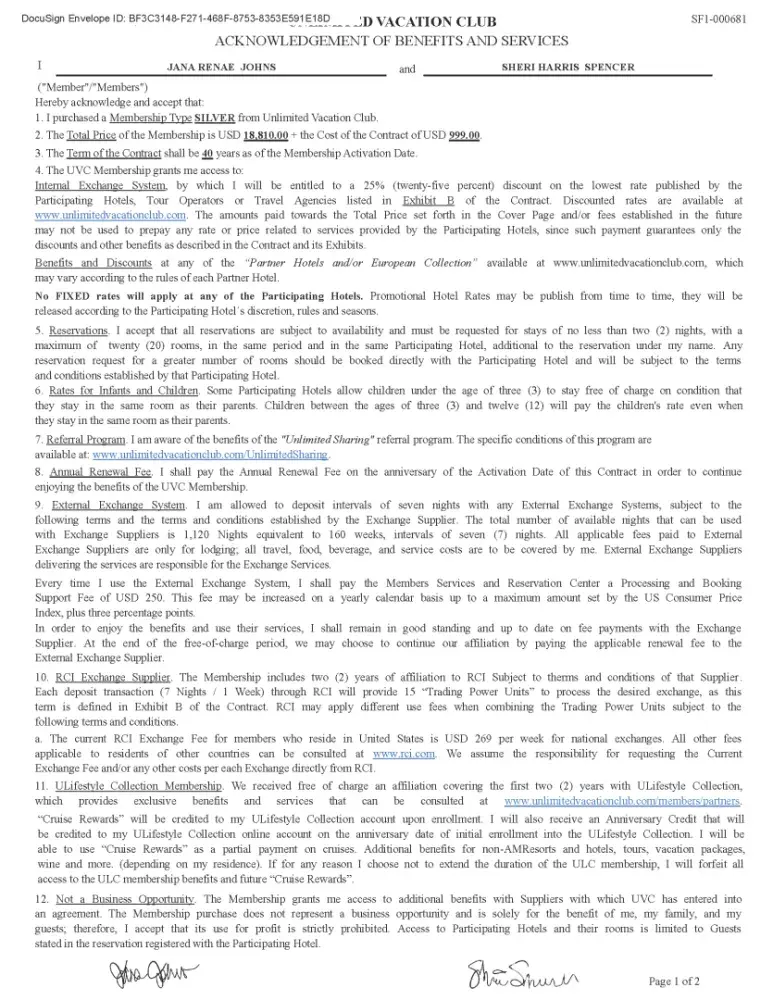 Read full complaintUVC vacation club the contract I received is not the contract I signed
