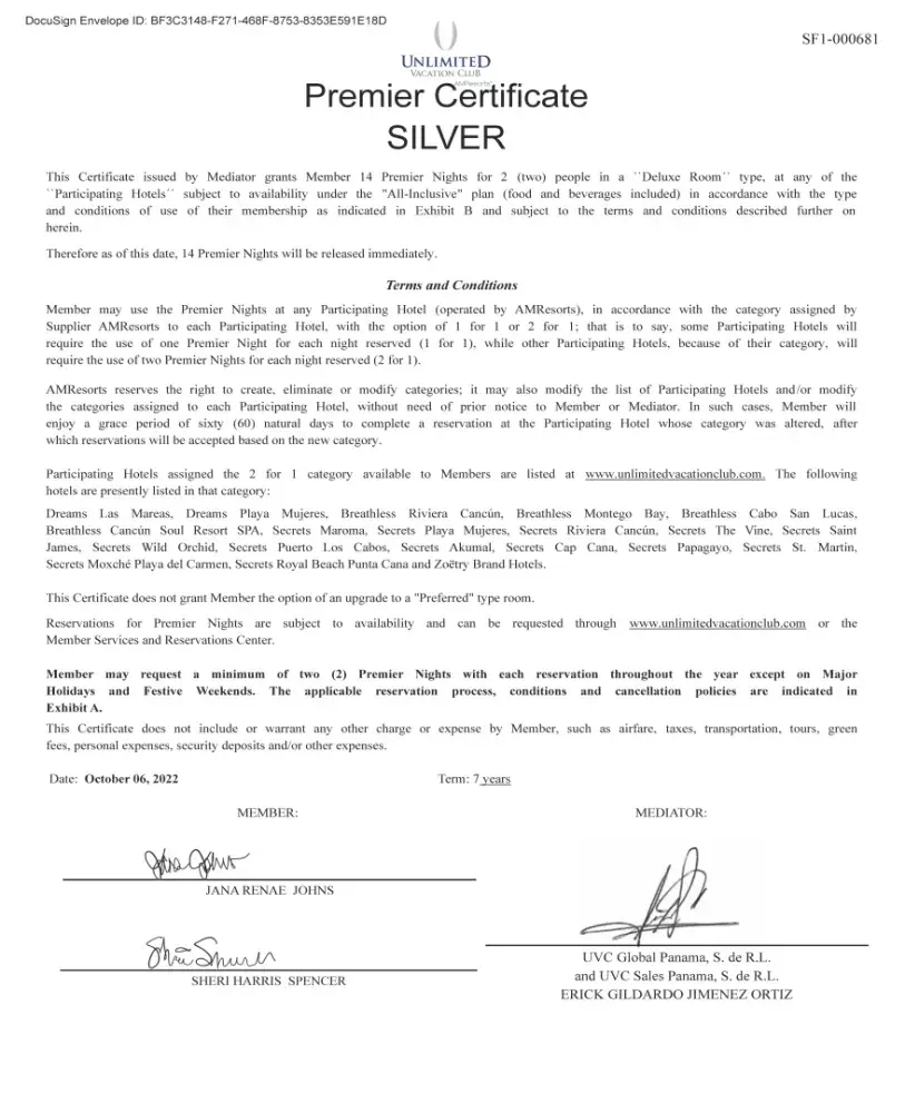 I went to "the talk" with no intention of buying anything but wanted the $250 in vouchers, However I changed my mind when i was assured i would be given $1000/year for cruises even through Disney to save money on future vacations and that there would be a significant savings. Most importantly i understood that this was a Hyatt company so very trustworthy. Then when i got home, i found their website to be very simple and had to SEARCH to find any association with Hyatt and could not find any connection for buying cruises or Disney, only their vacations in Central America and none of the world-wide places. Then even looking at their "savings' for Mexico and found minimal savings certainly not enough to justify the large amount of money i put on my credit card to buy in with them. I was scammed into thinking this was a Hyatt company and now see all the smoke in mirrors. I will make sure to let people know that the Dreams Resort I stayed in was beautiful and clean and the workers were lovely, however UVC is a team of scam artists. I contacted them already and was told to await a call from "Legal" With no phone call yet today I'm going to social media to ensure I get all of my money back.