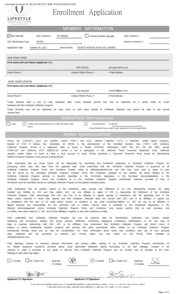 I’ve been a member since 2014 upgraded 3×1st two times of fine this last time the contract that I signed is not the contract that they sent me. It seems that their iPad that they make you sign and then you just touch to initial it seems like they added more to my contract Than I agreed to and forged my signature.