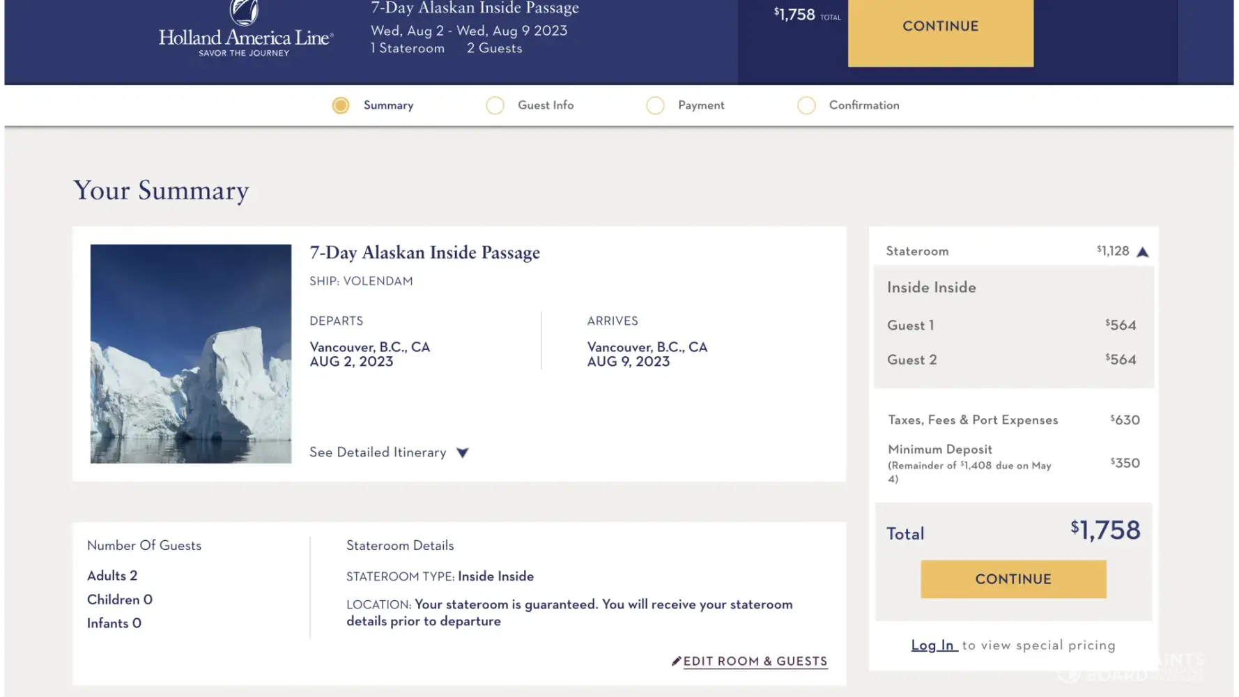 So we kept looking. We then found an Alaskan cruise through Holland America that was 7 nights and was $1,758 for the inside stateroom through Holland America's website on 04/02/2023. We called unlimited vacation club to tell them that the price on unlimited vacation club website was $2,598.00. The unlimited vacation club price even with the $500 reward was still $2,098.00. This is for the same cruise and same room. We talked to a representative from Unlimited Vacation club for over 55 minutes on the phone claiming we were likely getting a group discount or a member discount through Holland America. We are not Holland America members nor were we getting a group discount. The representative originally said they could not offer this price or the 25% discounted price. After bringing up that Exhibit B in our contract letter b. under "Price Match" outlining that