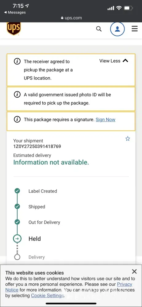 I have been having issues with delivery since last week. My bell is currently out of order so I placed a sign written in red marker on the main door to my building to make all of the delivery companies aware of the situation. Although a notation was left on my account for the driver he still decided to put the sticker on my door instead of ringing the bell above mine to get into the building to deliver my package. My building only has 4 apartments in it. I work from home so I am here my notice asked for them to ring the bell or call my cell to deliver my package. I was told on November 1, 2021 that my package would be held for 5 days at the UPS location in Newark, & I would have to pay a $8 fee to pick up my package. At this time I also made another complaint which the rep informed me at this time that she didn't see any records of my complaint from 2 days prior however, she assured me she was definitely doing her part & a supervisor would call me back. At that time I respectfully told the rep I highly doubt I would receive a call back which I was correct. If my package was going to be held for 5 days how was it sent back to the sender on November 1st? According to your rep that I spoke with today they held my package from 12-5pm, I didn't want to pay up so yall sent my package back Say What Now? What if I worked until 6pm? Further more that is not 5 days. I ended up asking for a supervisor due to the rep continuously speaking over me only for him to place me on a 30+ minute hold while he searched for a available supervisor. I wish I could say this is due to covid but the truth is covid just made it worse.