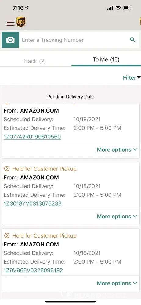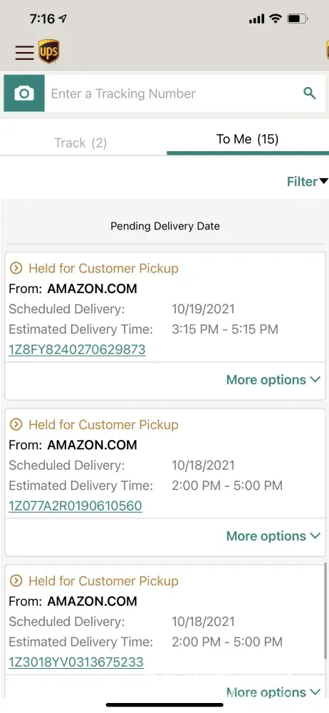 September 14, 2021--I'm unable to locate the tracking number but UPS driver said attempted delivery and holding for pick up at another location. Again I was at my home awaiting the package. Amazon got involved and had a UPS supervisor call me and had a different driver deliver to me two days later. This was a package for my elderly mother, she had just lost her home in the flood in Waverly Tennessee. I ordered a print that she had in her bathroom that she loved. I needed it to lift her spirits as we tried to get her moved in an apartment away from the flooded town.