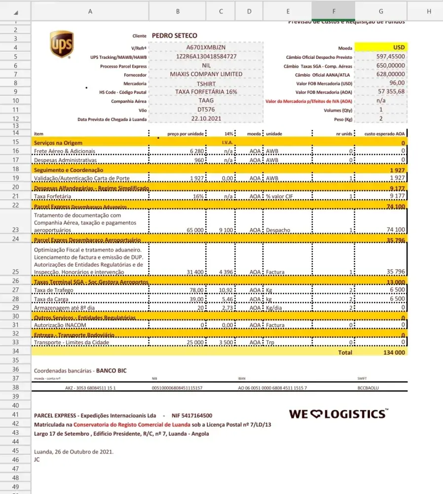 I have ordered a goods from China and have contacted a shipping agency in China called"Shenzhen HXSTAR Technology Co., limited to send it to via UPS DDP. I have paid $106 for the express freight. Goods arrives at my country Angola, and UPS local office call me to get the invoice for the goods because it goes for the inspection and I have provided the invoice.