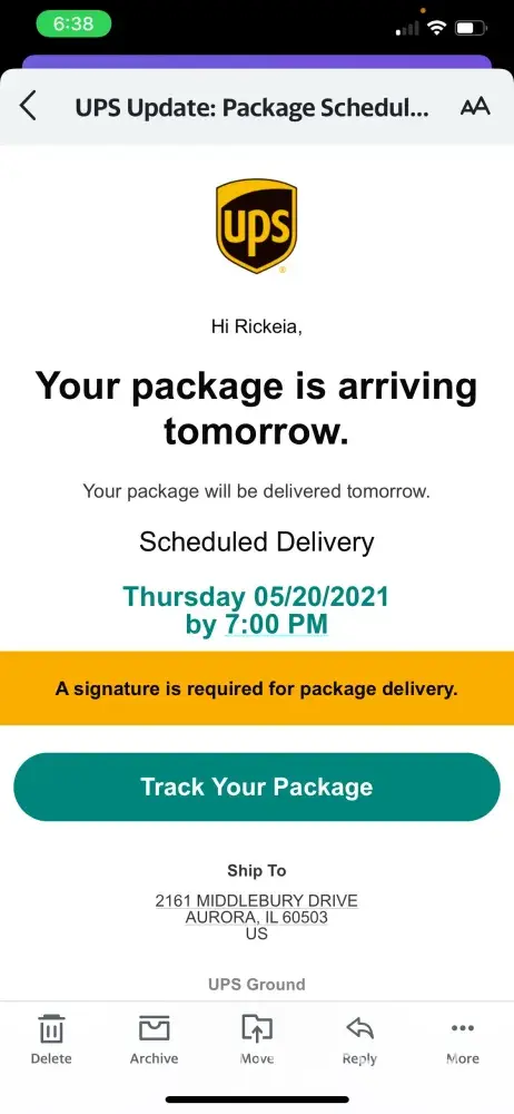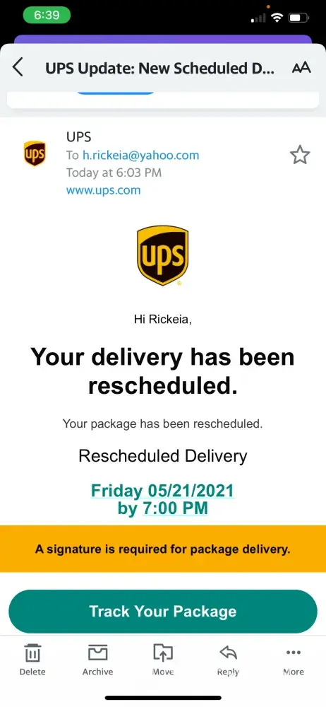 I contacted customer service about a matter regarding my package I paid for to be delivered today 05/20/2021 but somehow I received a email stating my package was rescheduling for tomorrow 5/21/2021 I contacted customer service regarding the matter and he was rude and then I called back again to explain my concerns and the order customer service agent hung up on me. I am so disappointed and probably won't do business with UPS anymore.