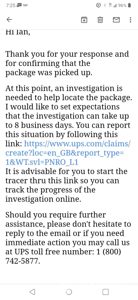 UPS Claims customer service