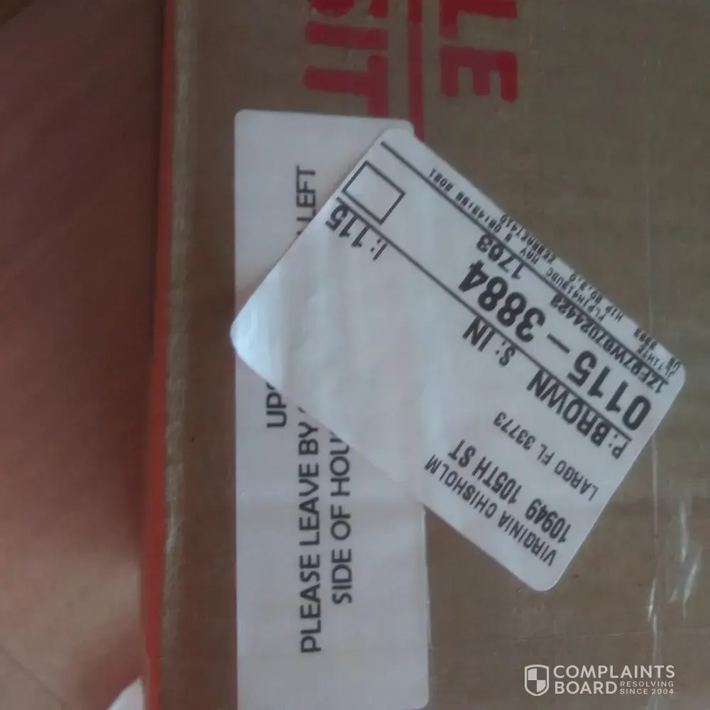 A package was delivered to my home on May 3rd at 4:50 p.m. with obvious damage, the box was rattling with screws and glass sticking through it. When I called to complain I was instructed to repackage the box in the original packaging, presents another problem I am disabled and unable to it. I was then instructed to asked a neighbor because the package would not be picked
