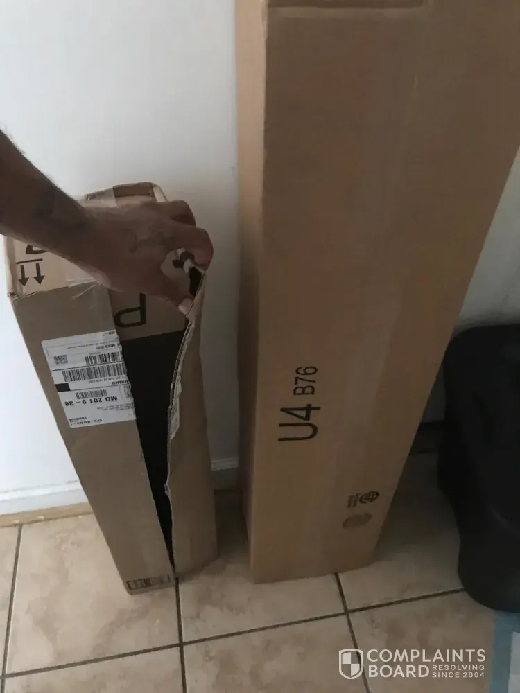 If you look at the box, it is obvious that the tape has been tampered with, the box itself has been crushed and even the box inside the shipping box was damaged. The driver even took the receipt! This is completely unacceptable!