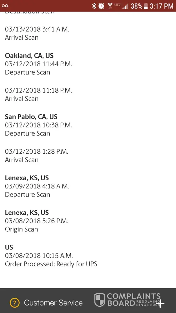 United States 03/08/2018 6:12 P.M. Order Processed: Ready for UPS