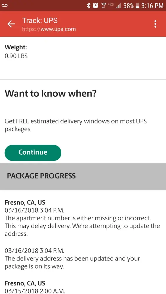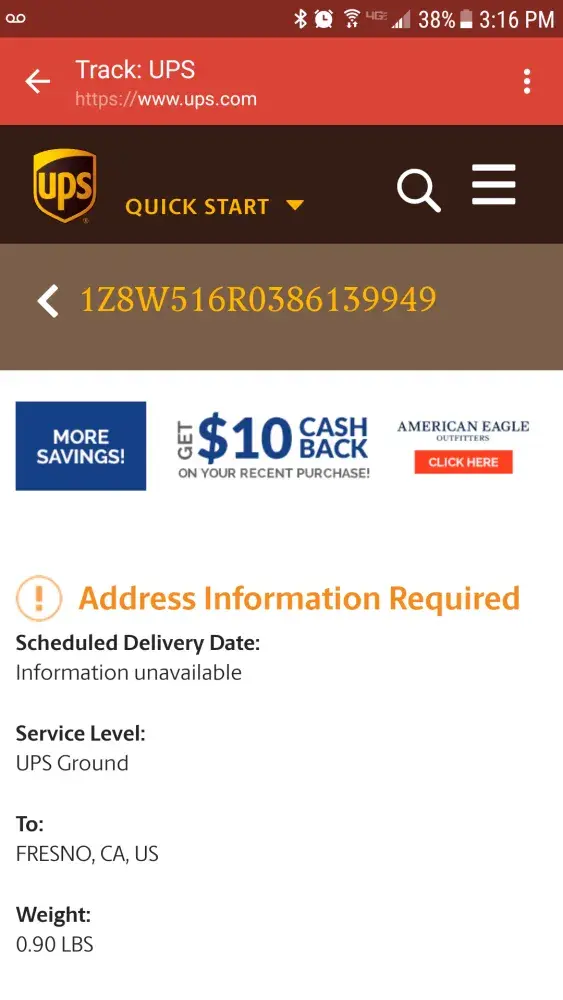 UPS tracking shows: