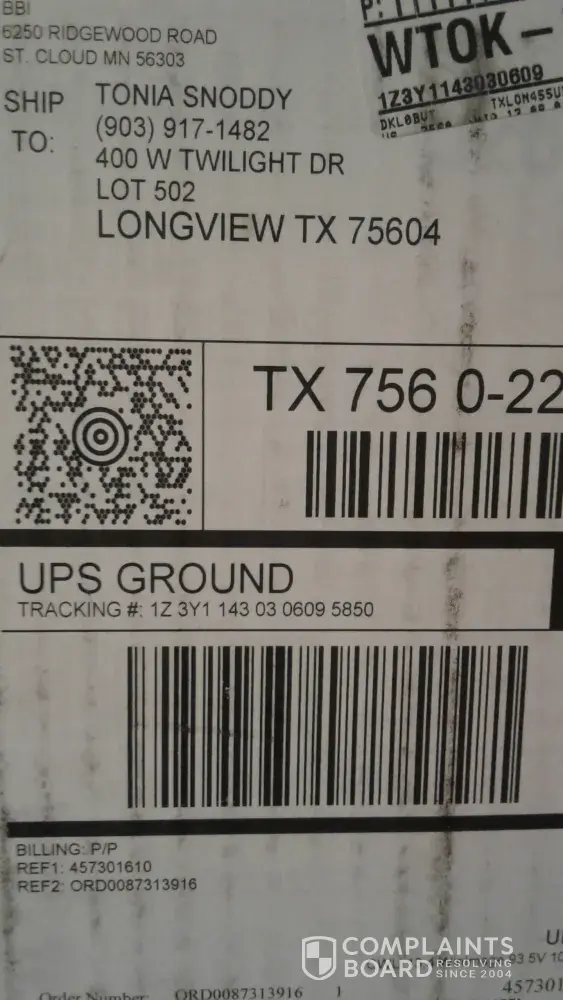Delivery address 400 W Twilight Lot 502, Longview, Texas 75604.