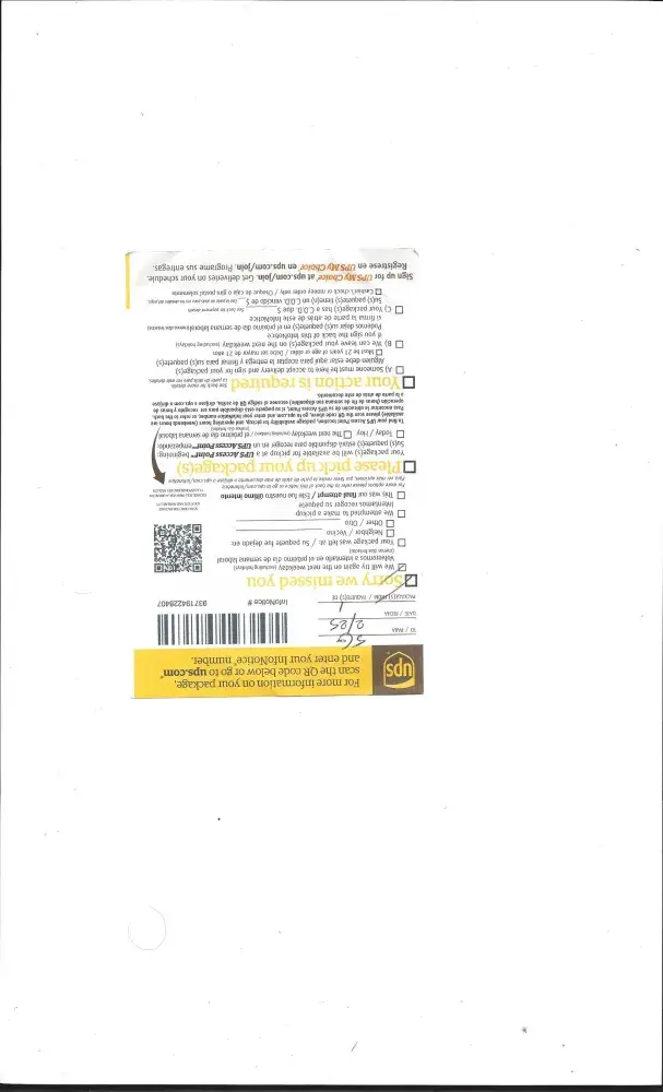 I AM FILE A COMPLAINT TO UPS THAT I DIDN'T RECEIVED THE PACKAGE, FROM 2 DAYS. ON FEBRUARY 25, 2015, I FINALLY GET A NOTICES. THE INFO- NOTICE # [protected]. I WILL PUT IT ON ATTACH PROOF PHOTOS BELOW. I AM STILL WAITING FOR MY PACKAGE. I FILING A CLAIM OF $75.00 FOR STOLE PACKAGES AND DAMAGES. THEY WANT TO PICK UP THE PACKAGES DOWN STAIR IN THE LOBBY OF MY BUILDING. THEY'RE LAZY TO GO UP STAIR..
