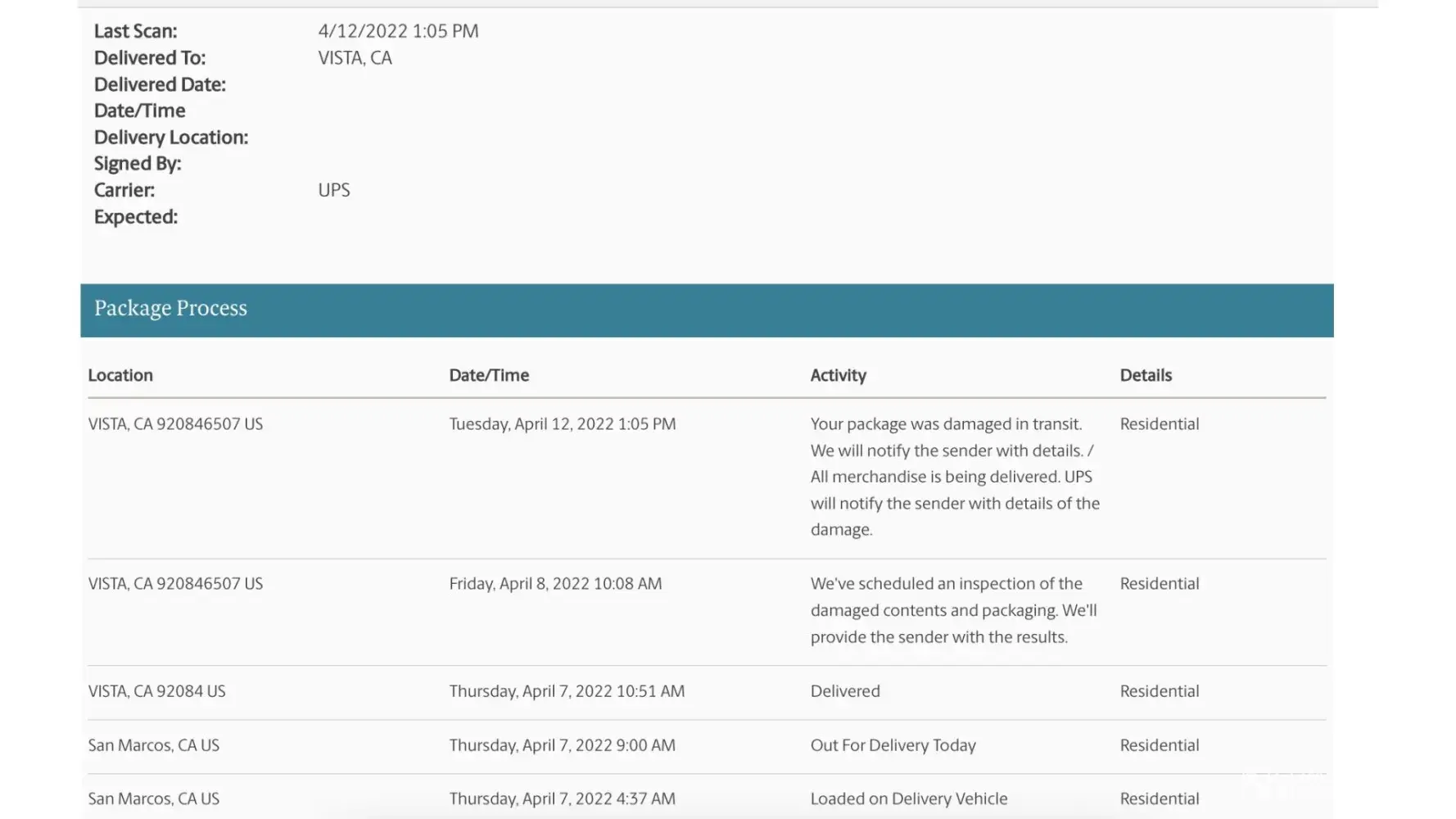 Originally after the damage was reported UPS came to do an inspection. I wasn't informed of it. The driver left and note and said they'd be back on Monday. I stayed home from work that Monday for the Damage Inspection as per my UPS tracki