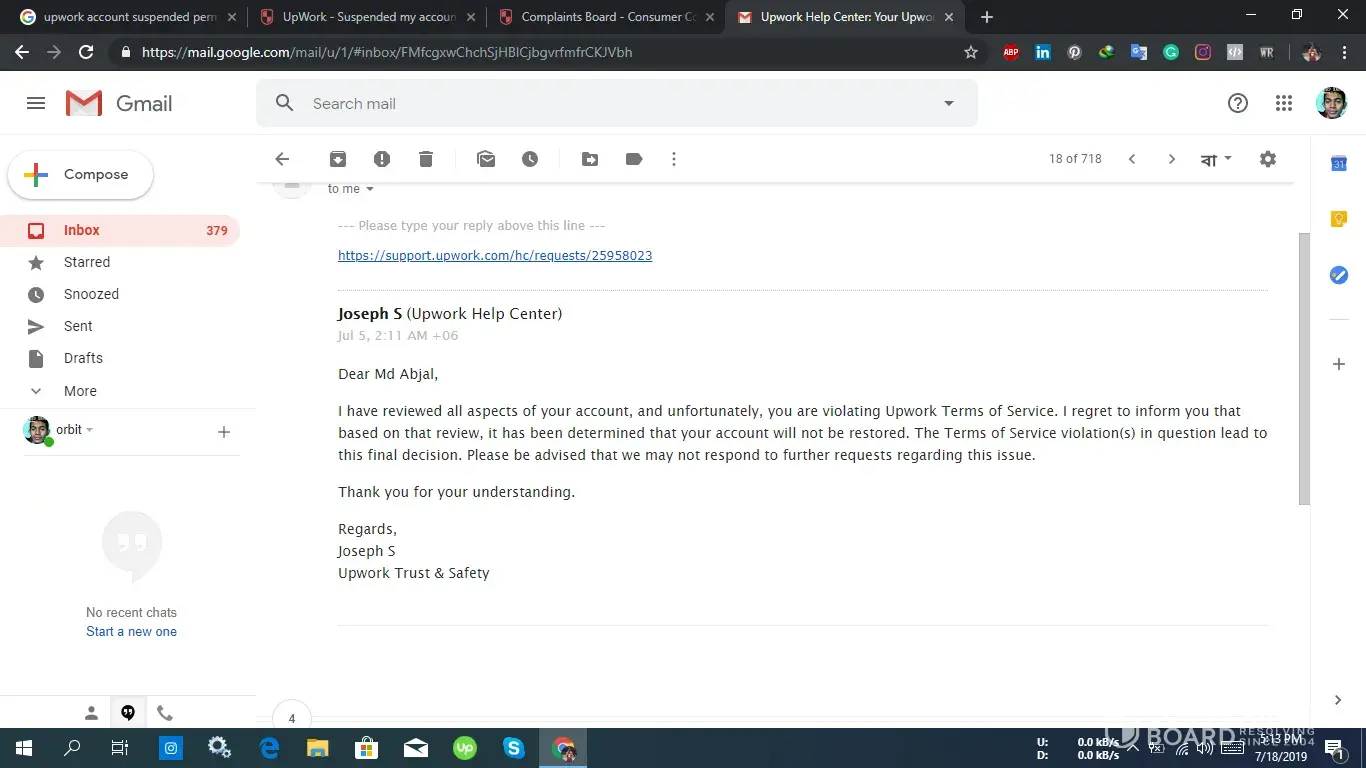 Upwork suspended my account without notice